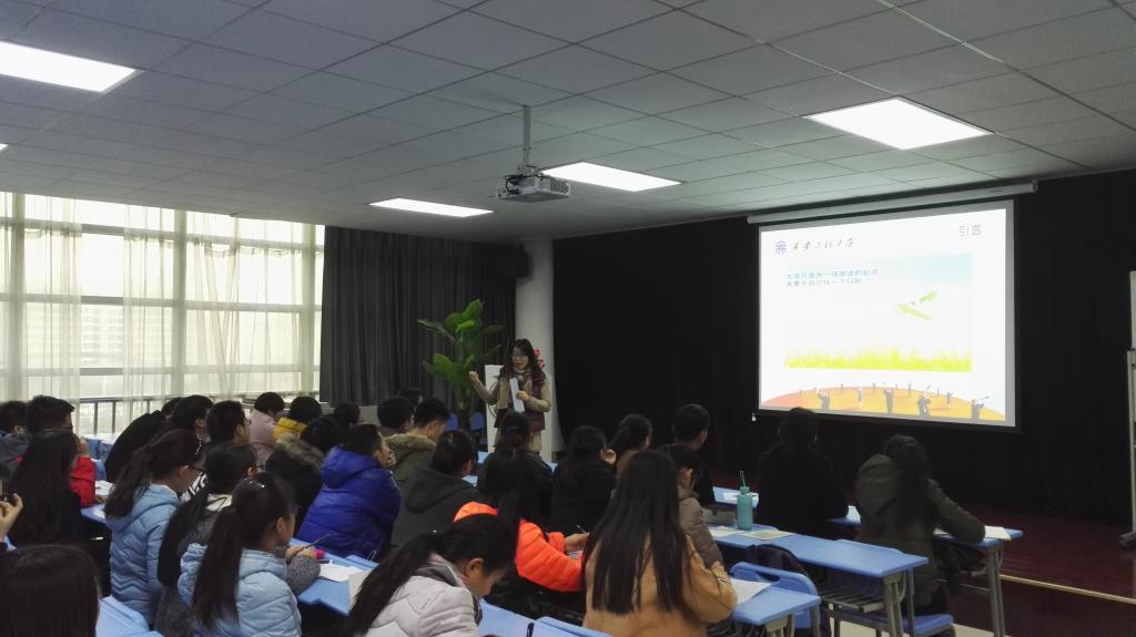 刘佳从就业创业委员的职能与学生职业生涯进行了讲解。刘老师告诫广大同学作为终会面对社会的大学生,提早将自己的角色定位为职场人,明确自己的目标,同时对就业委员提出了几点建议:在班级充分发挥就业委员的职责,积极开展以职业生涯规划为主题的班会;每学期对班级同学适合的职业等进行测试;组织模拟职场上无领导小组讨论面试等相关活动。