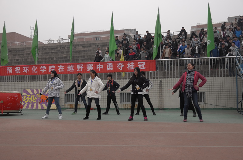 下午四点,副校长樊增禄致辞,校纪委书记朱君强宣布比赛开始。第一场女子一圈随即开始,女生个个斗志昂扬,随着枪声打响,她们身姿矫健巾帼不让须眉。"环化!加油!环化!加油……"随着阵阵鼓声,看台上的同学用铿锵有力的声音呐喊着,转眼间她们已经冲出体育场。女子一圈结束后是男子两圈,他们争先恐后,跑出了环化男儿的气魄。后面的女子两圈和男子三圈同样十分精彩。我院观赛学生还表演了手操为运动健儿加油。