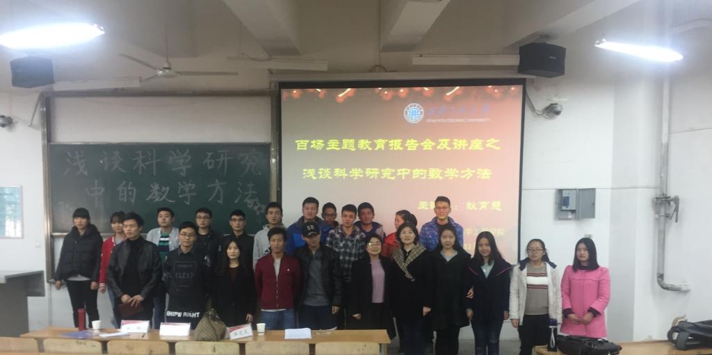 2016年11月30日下午两点整,由学生工作部(处)主办,yl6809永利官网承办的“浅谈科学研究中的数学方法”主题报告会在临潼校区B-137教室顺利召开。yl6809永利官网院长狄育慧、党委副书记袁群、学工办主任林定武及近300名学生参加了此次报告会。报告会由党委副书记袁群主持。党委副书记袁群对院长狄育慧做了简要介绍。
