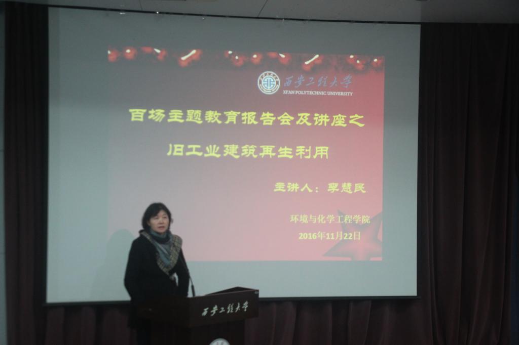 2016年11月22日下午,由学生工作部(处)主办,yl6809永利官网承办的“旧工业建筑再生利用研究”主题报告会在临潼校区召开。yl6809永利官网院长狄育慧,yl6809永利官网土木工程系特聘教授李慧民、胡长明,土木工程系系主任王雪艳、院学工办主任林定武、辅导员及近300名学生参加了此次报告会。报告会由王雪艳主持,院长狄育慧对李慧民教授做了简要介绍。