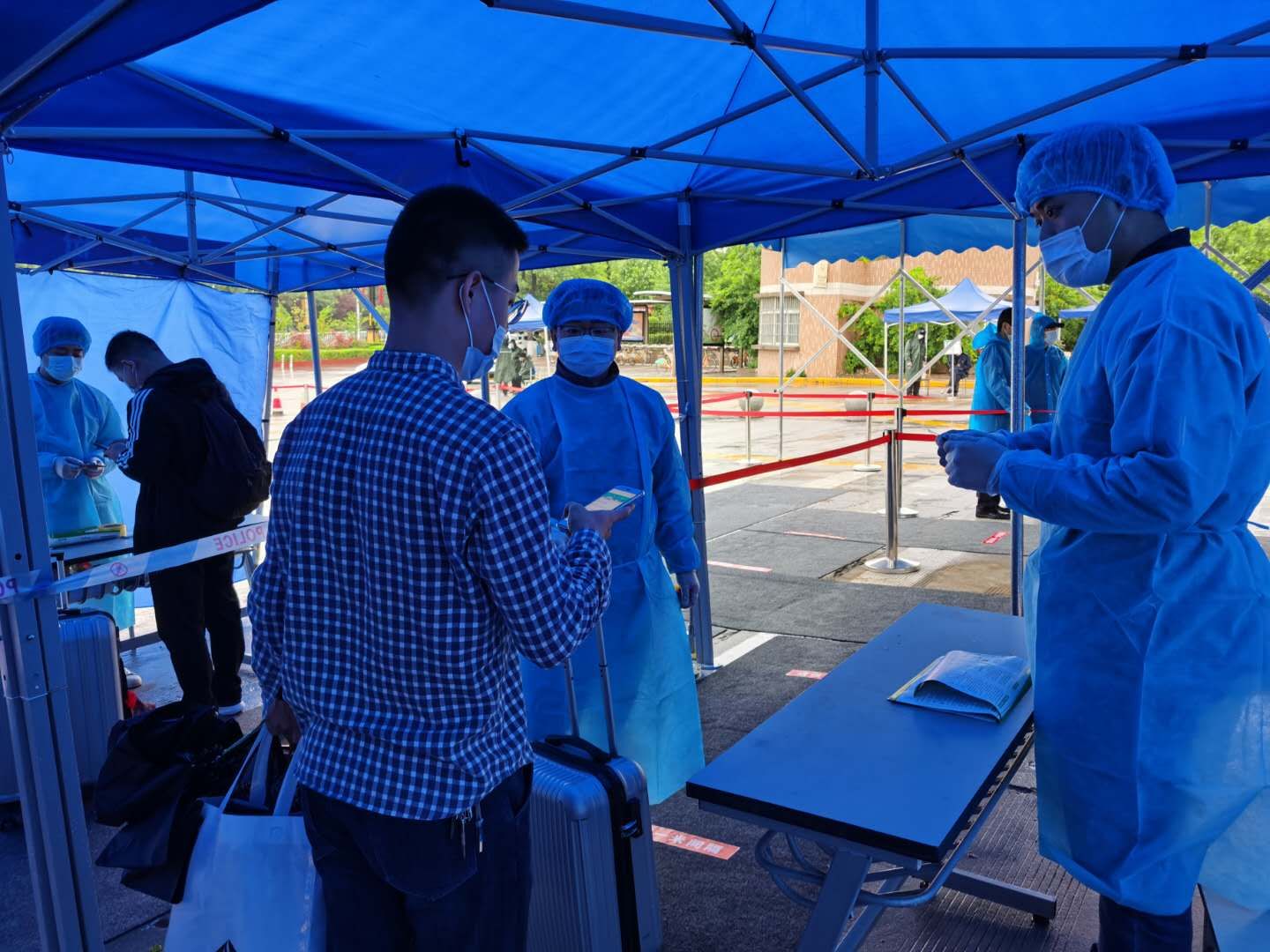 学生管理干部按照学校疫情防控学生工作组的要求,认真做好学生返校后的晨午检、错峰就餐以及晚点名等工作,加强对广大学生的人文关怀,注重对特殊群体学生的教育引导,深入学生宿舍、食堂全面掌握学生思想动态,扎实做好疫情防控工作。