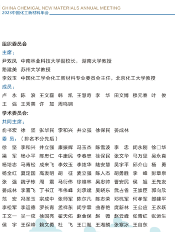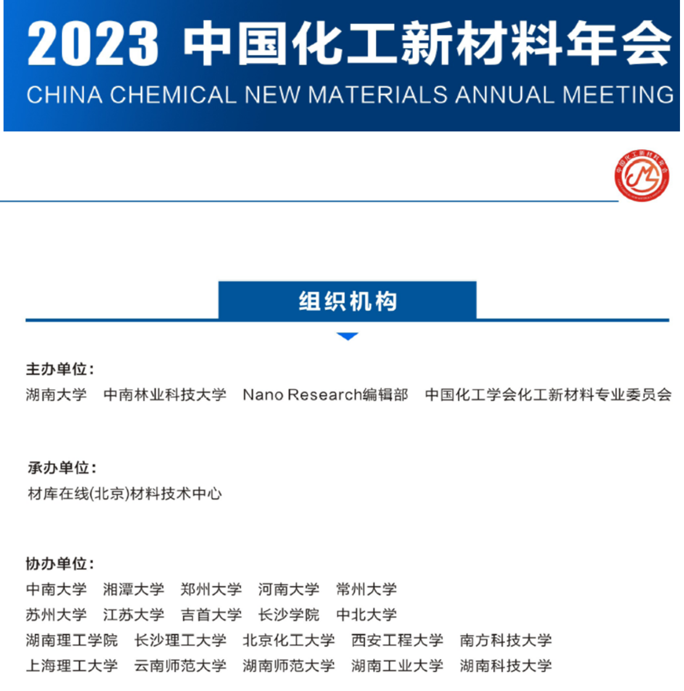 2023年12月8-10日,由湖南大学、中南林业科技大学、Nano Research 编辑部、中国化工学会化工新材料专业委员会联合主办的中国化工新材料年会在湖南长沙顺利召开,西安工程大学为协办单位之一,来自国内外知名学者300余人参加本次会议。中国化工新材料年会(CCMM)是国内化工新材料科研人员搭建的学术交流与合作平台,会议主要从学术和应用两方面针对新能源与化工新材料、光电转换与光电材料、环境材料与环境催化、高性能纤维与纳米复合材料、化工新材料合成、加工、结构与性等研究领域进行学术交流与研讨,共同探讨未来发展前景与方向。