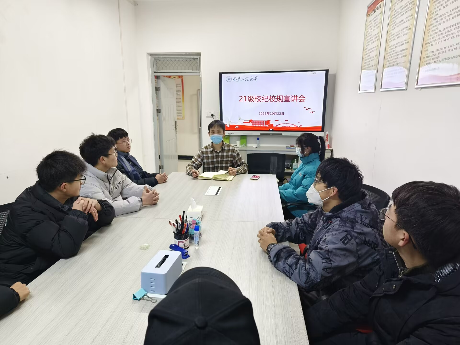 为帮助2021级学生更快地了解学校规章制度,以饱满的姿态迎接学期考试,10月22日晚,yl6809永利官网于环化楼238会议室举行学习校规校纪主题班会,21级班长团支书参加,会议由我院辅导员张易泽主持。