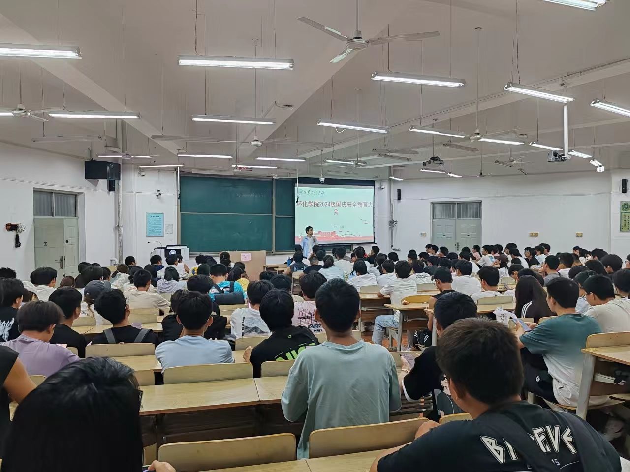 国庆假期将至,为加强我院2024级新生假期安全教育,提高学生自我安全防护能力,我院在9月26日晚于临潼校区B137教室召开了国庆假期节前安全教育大会。24级辅导员张易泽、23级辅导员盖潇宇及全体24级本科生参加本次大会。