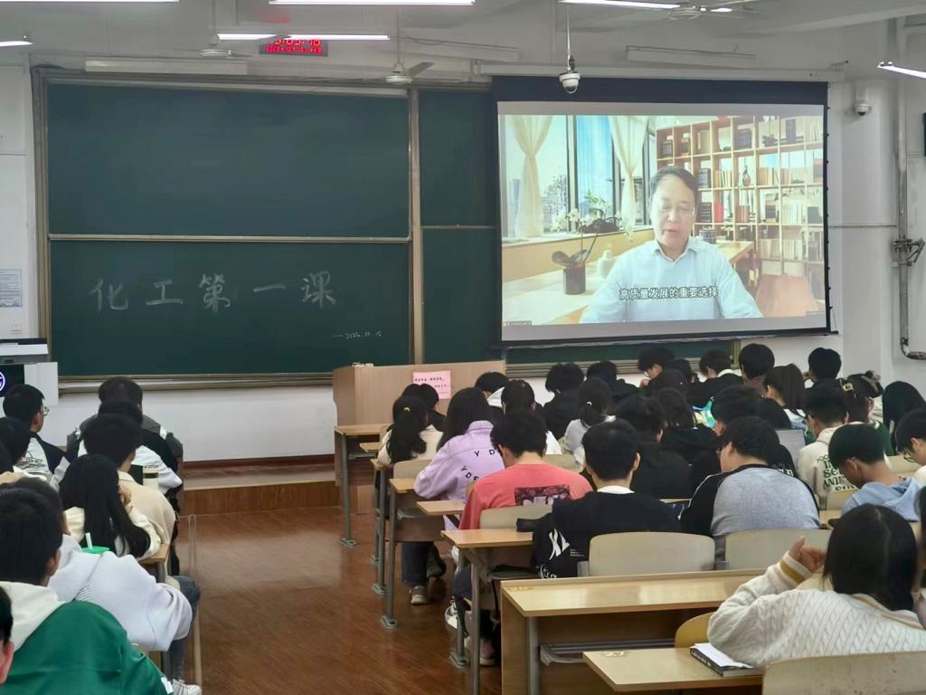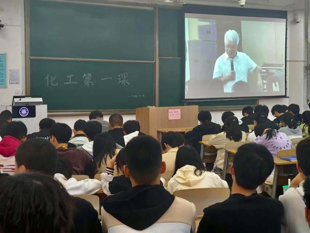 10月15日下午,我院2023级新生“化工第一课”在教学楼B137举行。本次“化工第一课”由中国化工学会主办、四川大学化学工程系承办,在西安工程大学设立分会场,我院2023级新生与多所高校学子共同观看了线上直播。