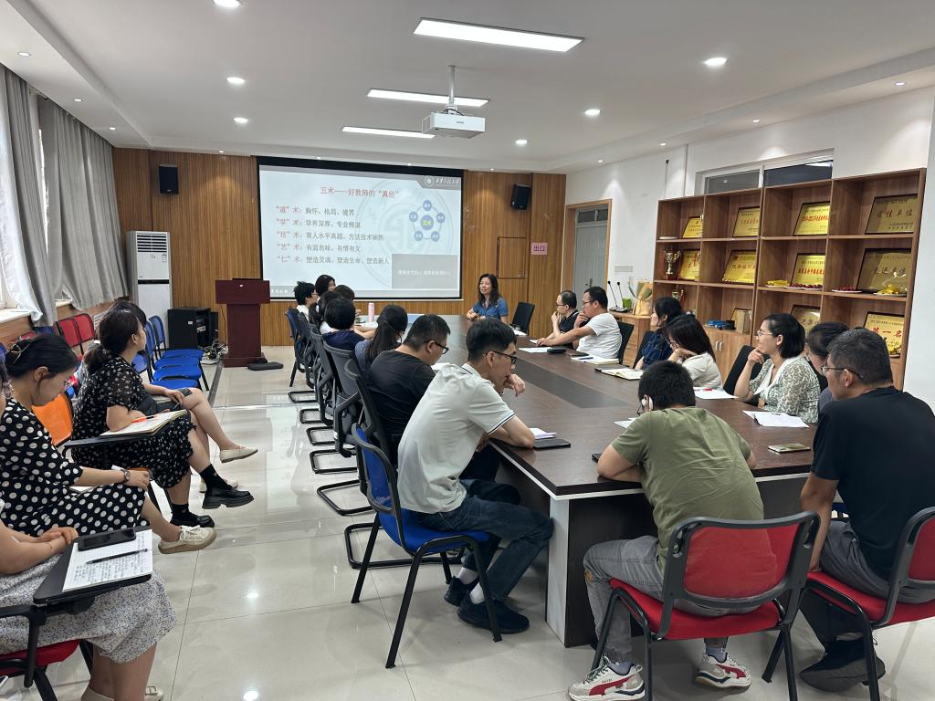分享会上,赵婧老师围绕竞赛简介、赛前准备、教学设计和赛后感悟几个方面做了精彩深入的讲解,对比赛的评分细则进行分解,并针对教学设计中的教学目标、教学内容、教学过程、教学手段等方面分享了自己实用的参赛经验,帮助与会青年教师精准对接比赛要求,积极备赛。参会教师与赵婧老师进行热烈讨论,纷纷表示深受启发,受益匪浅。
