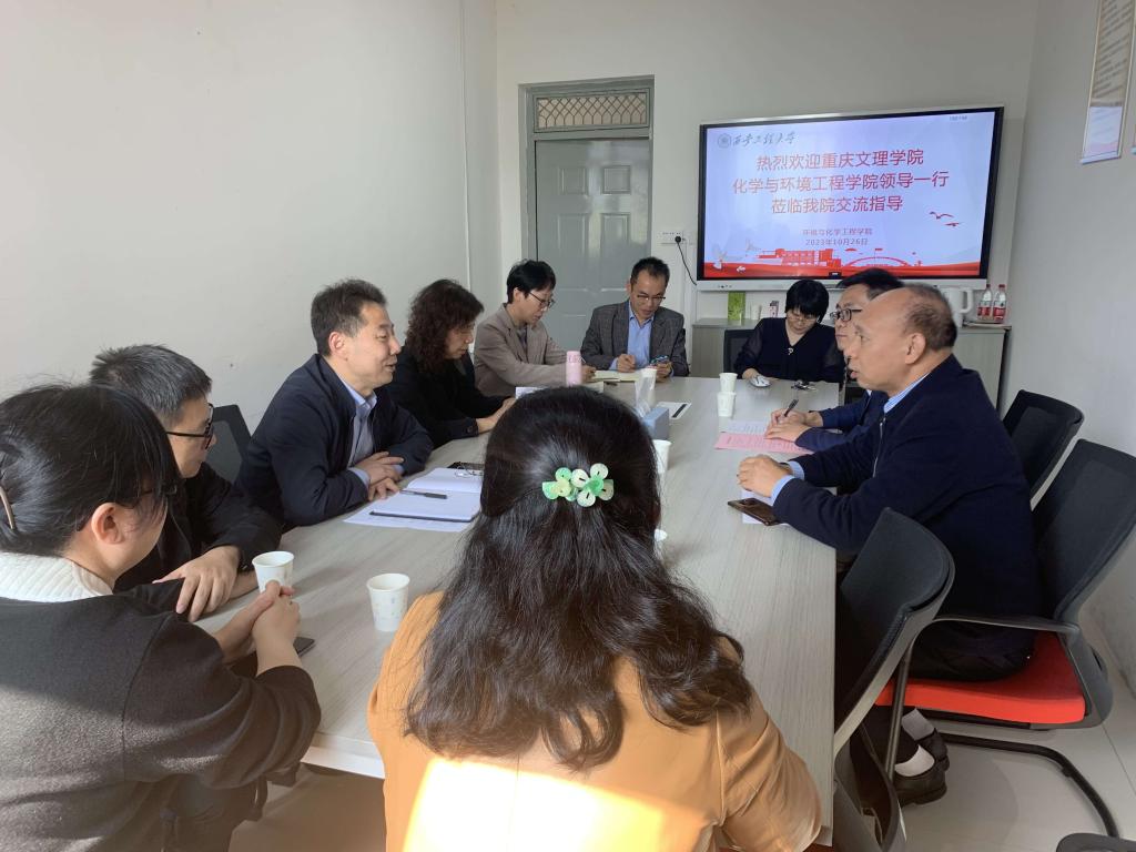 10月26日下午,重庆文理学院化学与环境工程学院院长谢志刚,教师代表丁戈一行来我院开展交流调研工作,学院党委书记胡西民、副院长常薇、院长助理武峥,各系、实验室主任、办公室副主任、学科秘书一同参与座谈交流。