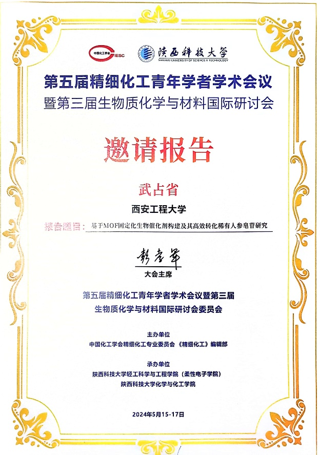 我院武占省教授受邀参会并担任分会场主持人,在会议中受邀作了题为“基于MOF固定化生物催化剂构建及其高效转化稀有人参皂苷研究”的学术报告。会后,武占省教授围绕如何开发高效生物催化剂与参会的专家及代表进行了深入的交流与讨论。