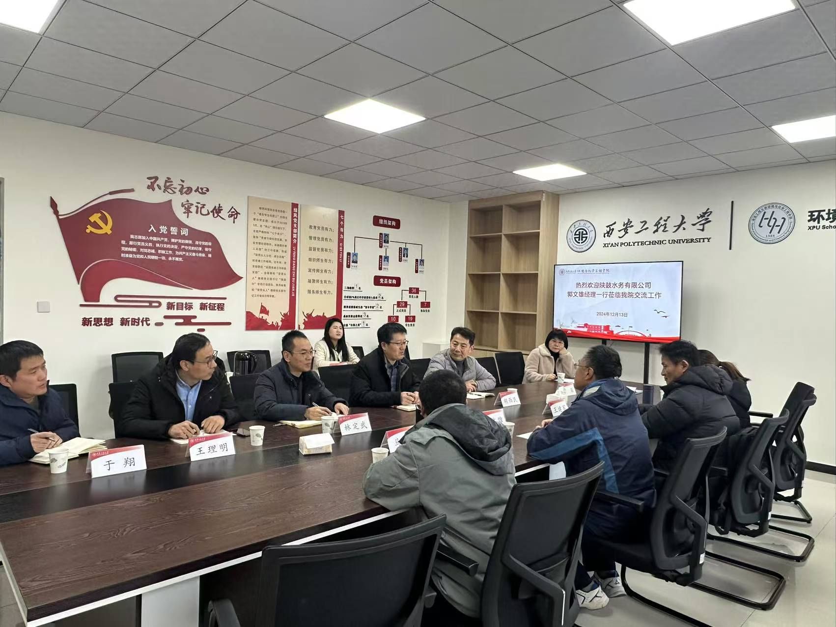 12月13日上午,陕西鼓风机(集团)有限公司水务分公司(简称“陕鼓水务”)总经理郭文雄、总工程师王建军一行4人应邀来yl6809永利官网开展产学研交流座谈会。学院党委书记胡西民、副院长(主持工作)武占省、副书记林定武、环工系主任李茹、副主任王理明等学院领导及教师出席了此次交流活动。