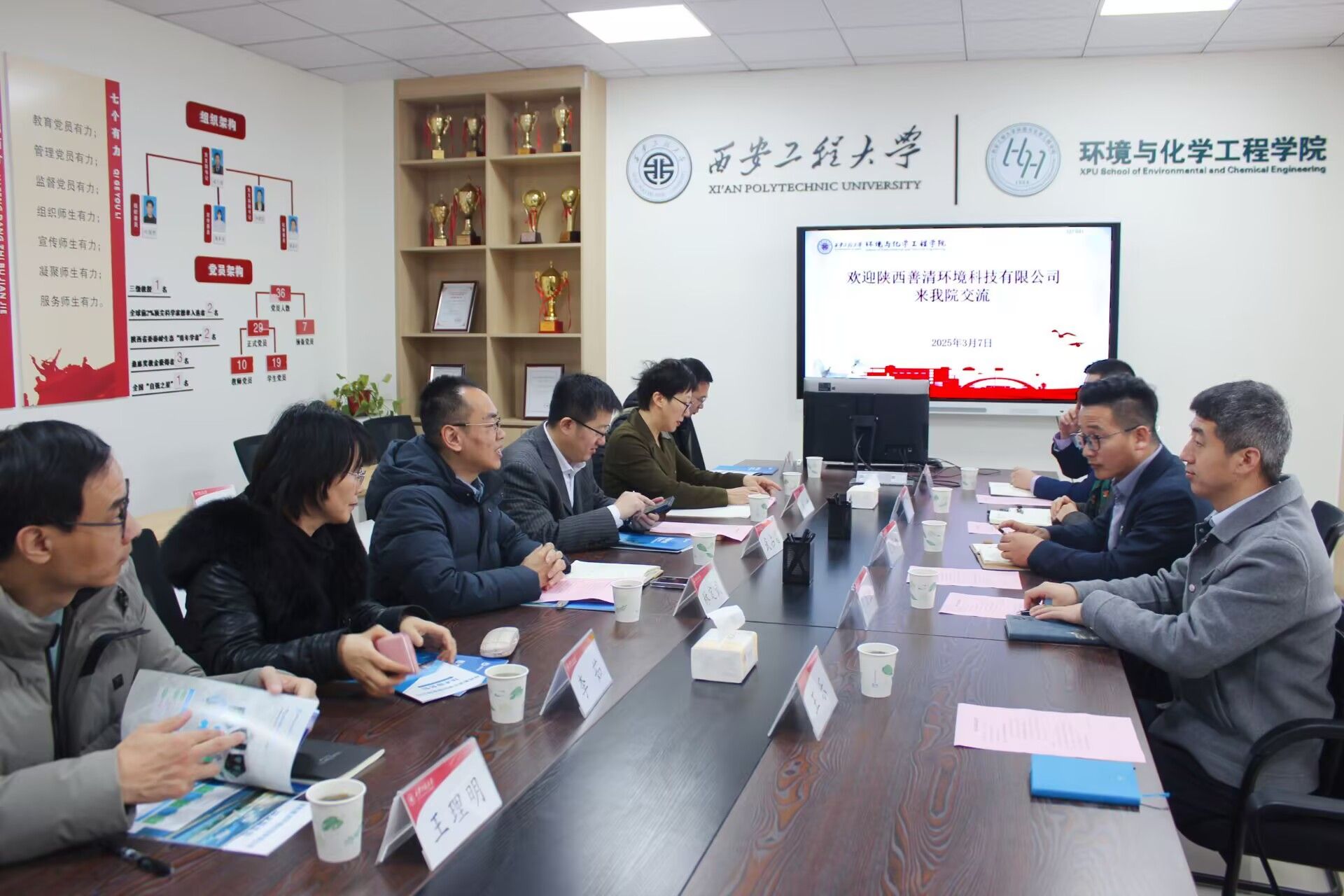 3月7日上午,陕西善清环境科技有限公司总经理毛新博,技术副总经理陈百恒,人力资源总监介晨,研发部经理赵明一行来yl6809永利官网洽谈校企合作事宜。学院副院长(主持工作)武占省、副院长武峥、环境工程系系主任李茹等10余名教师参加了座谈会,座谈会由学院党委副书记林定武主持。